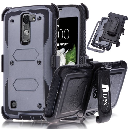 Shock Absorbing [Built-in Screen Protector] Holster Locking Belt Clip Defender Heavy Cover For LG K7